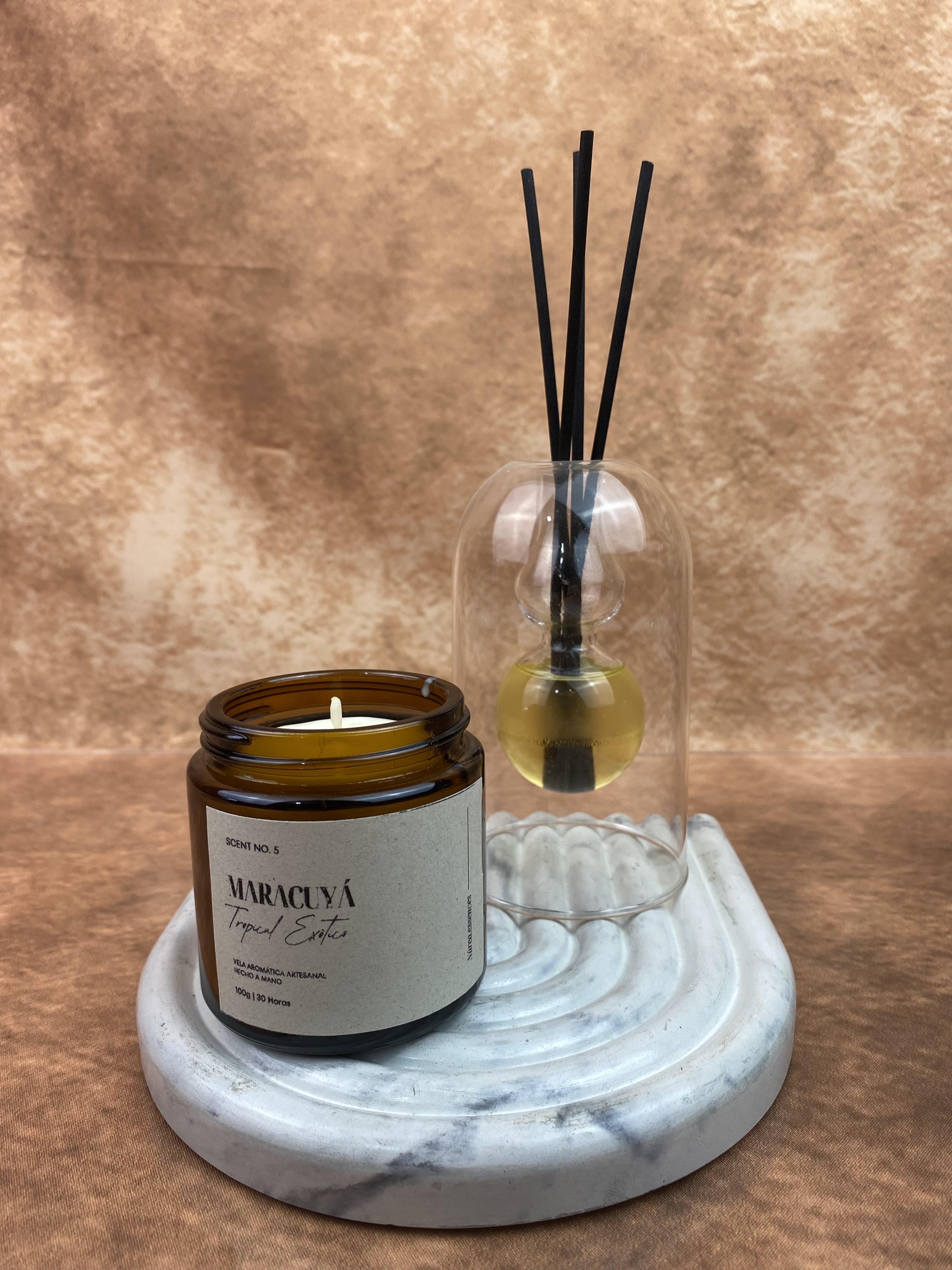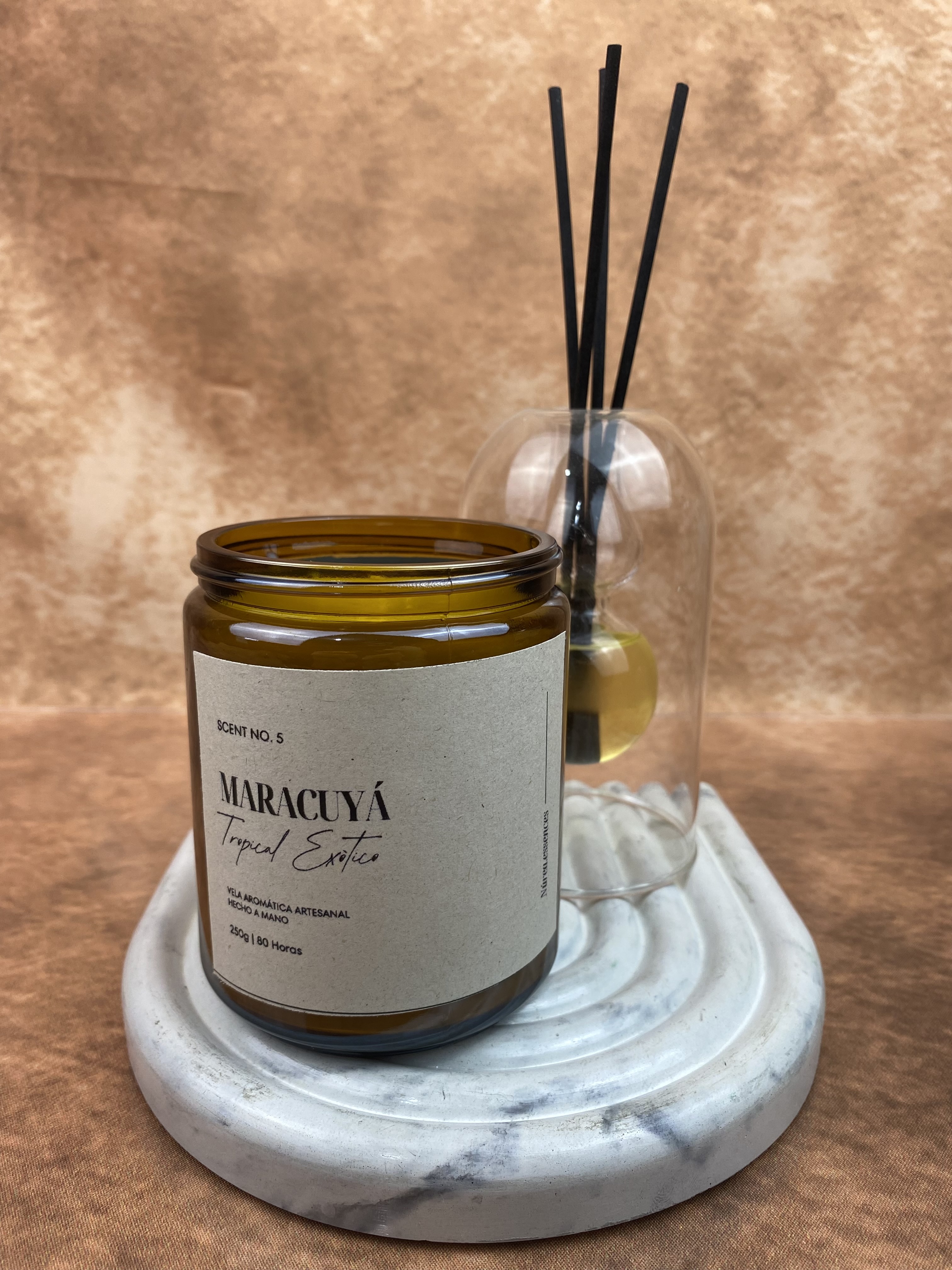 Es una vela muy aromática, espectacular que te encantarà por sus notas aciduladas,refrescantes,exòtica y afrutada.